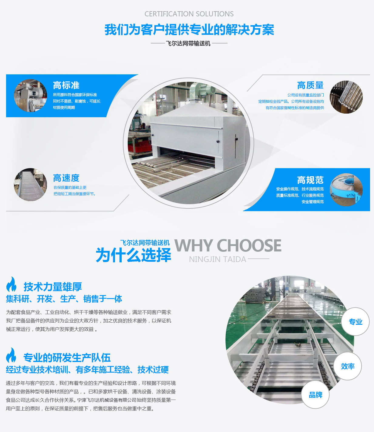 寧津飛爾達機械設備有限公司始建于1997年,位于山東省寧津縣經濟開發(fā)區。本公司以生產制造金屬類網帶、鏈板、鏈條為主導產品。 建廠近20年,已和多家烘干設備、清洗設備、涂裝設備、食品公司、工業(yè)自動化達成長久合作伙伴關系。在保質量、保工期的基礎上更把售后當做重要環(huán)節(jié)。 本廠配件系列有:輸送網帶、輸送鏈板、輸送鏈條、乙型網帶、烘干網帶、清洗網帶、不銹鋼鏈板、沖孔鏈板、排屑鏈板。 設備系列:網帶輸送機、鏈板輸送機、烘干輸送機、清洗輸送機、轉彎輸送機。